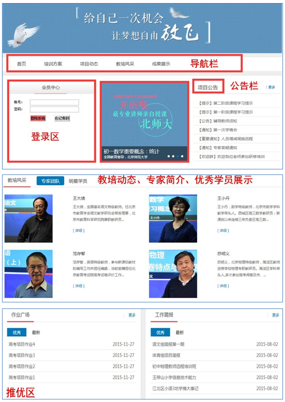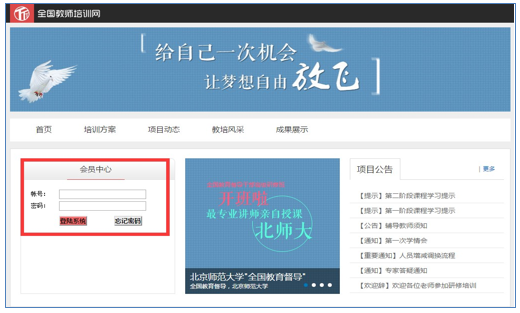 在主页面的【培训项目】中根据项目名称找到自己所参与的子培训项目,点击项目名称即可进入, 在登录区输入帐号和密码即可进入个人学习的工作室。